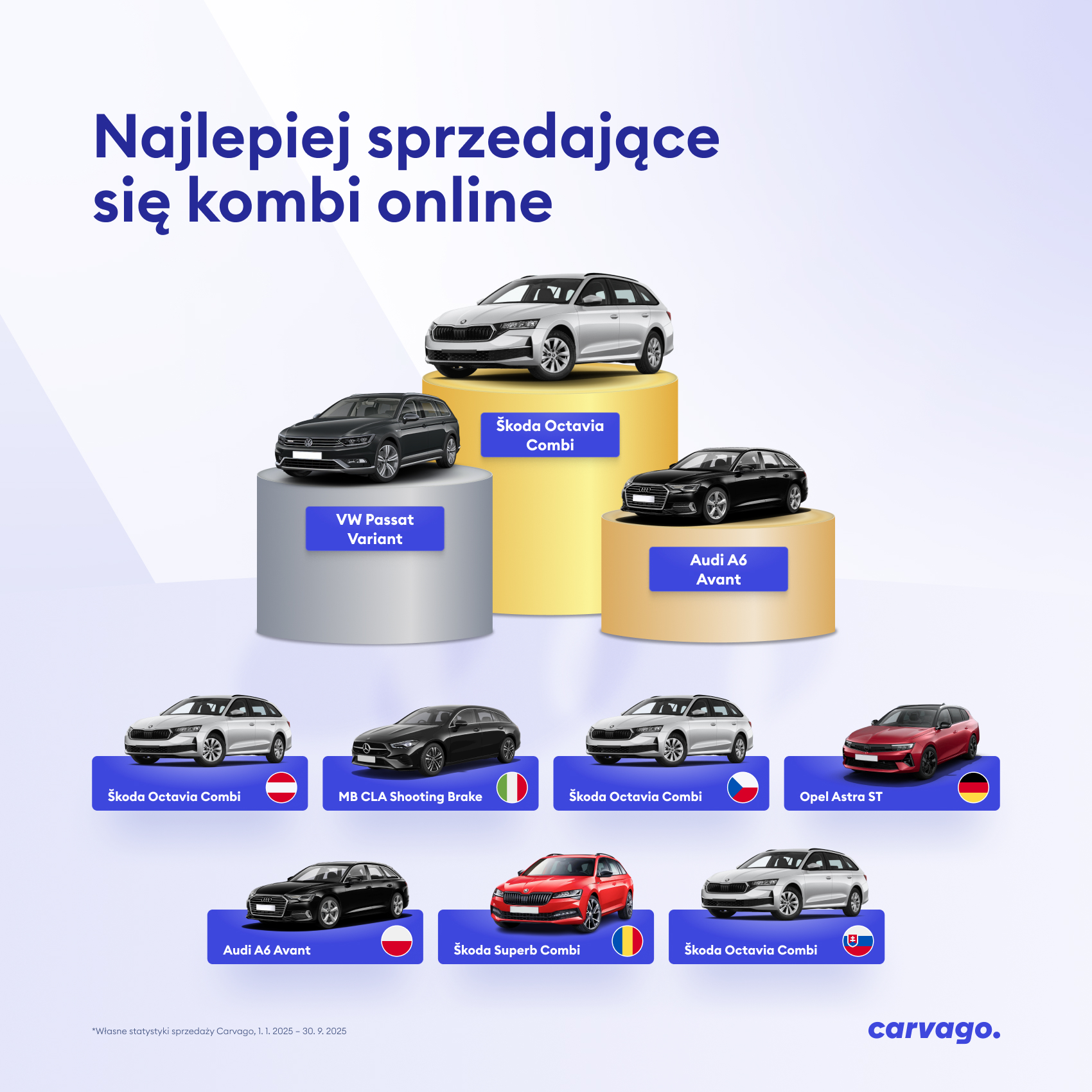 Obecnie Carvago oferuje ponad 100 000 samochodów kombi. Najwyższy udział w całkowitych wynikach sprzedaży mają w Polsce (21%), a najniższy we Włoszech (17%). Spojrzenie na najlepiej sprzedające się modele na poszczególnych rynkach ujawnia interesujące różnice lokalne. Podczas gdy w Austrii, podobnie jak w Czechach i na Słowacji, dominuje Škoda Octavia Combi, niemieccy klienci, którzy decydują się na zakup kombi online, najczęściej wybierają Opla Astrę ST. Polscy kierowcy najczęściej sięgają po premium Audi A6 Avant, a w Rumunii w statystykach króluje Škoda Superb Combi. Całkowicie specyficzny jest rynek włoski, gdzie na pierwszym miejscu znalazł się stylowy Mercedes-Benz CLA Shooting Brake.