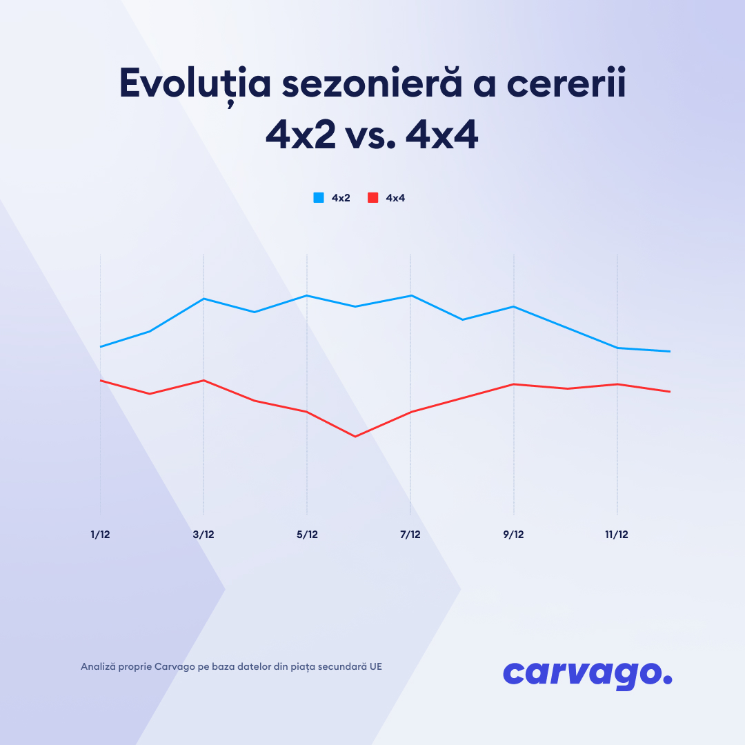 - Cererea pentru mașini cu tracțiune integrală este puternic sezonieră, atingând vârful în lunile reci
