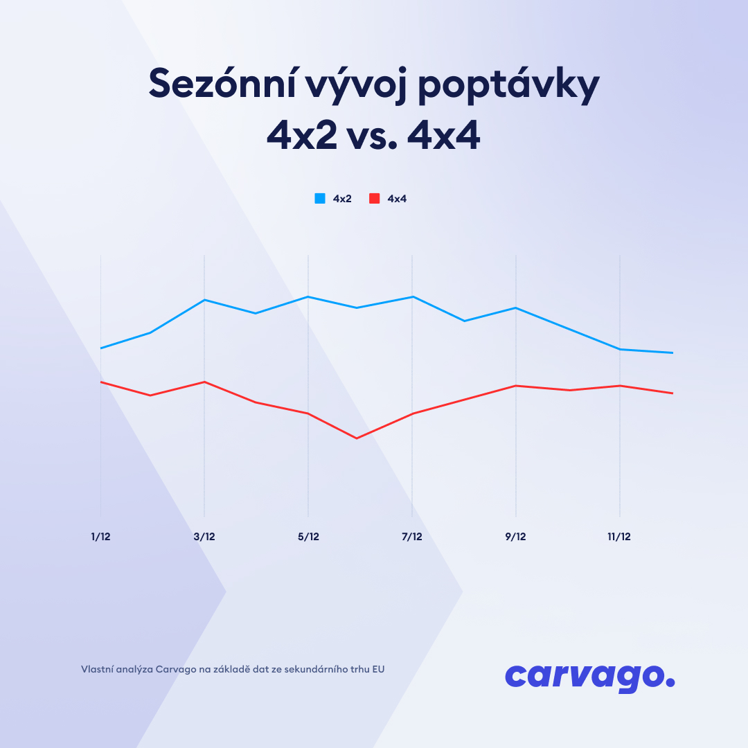 - Poptávka po vozech s pohonem všech kol je silně sezónní, vrcholí v chladných měsících